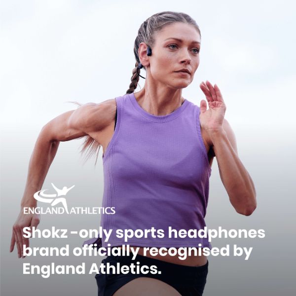 The 9th generation bone conduction technology with an open-ear design means the ear canal is not blocked and surrounding noise can be heard. This situational awareness means they are a safer headphone to wear when running and cycling. In fact Shokz are the only sports headphone brand recognised by England Athletics and approved for use in road races.