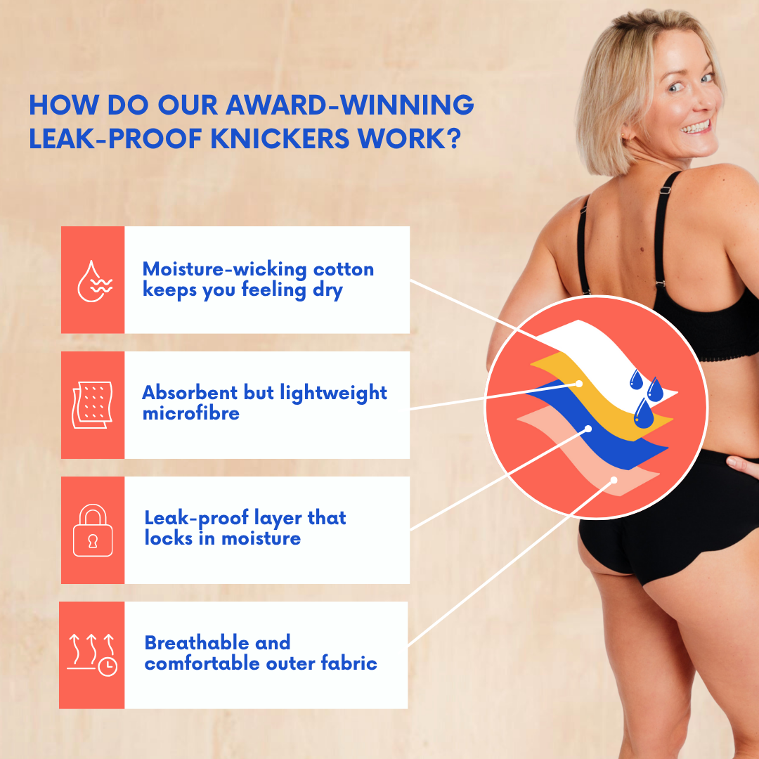 Introducing the Susie Mid Rise Knicker for period and bladder leaks manufactured by Nixi Body. Why you'll love the Susie This award winning mid-rise style...